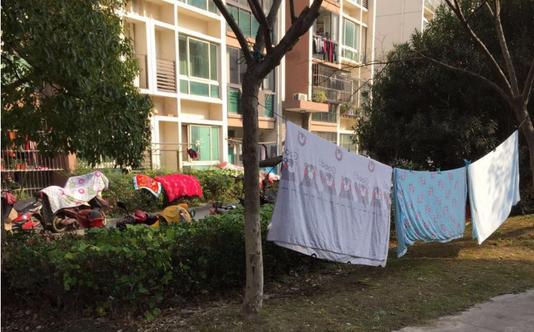 绿化带晒被子