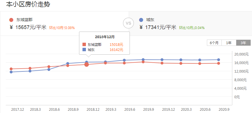 东城蓝郡二手房均价为15018元/㎡