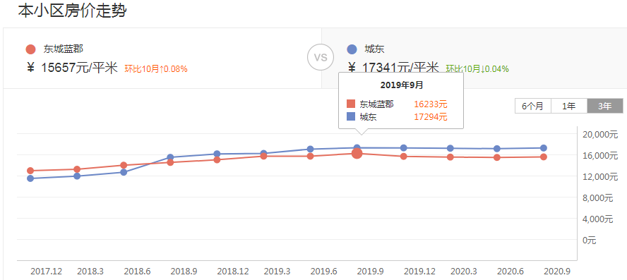 东城蓝郡二手房均价为16233元/㎡